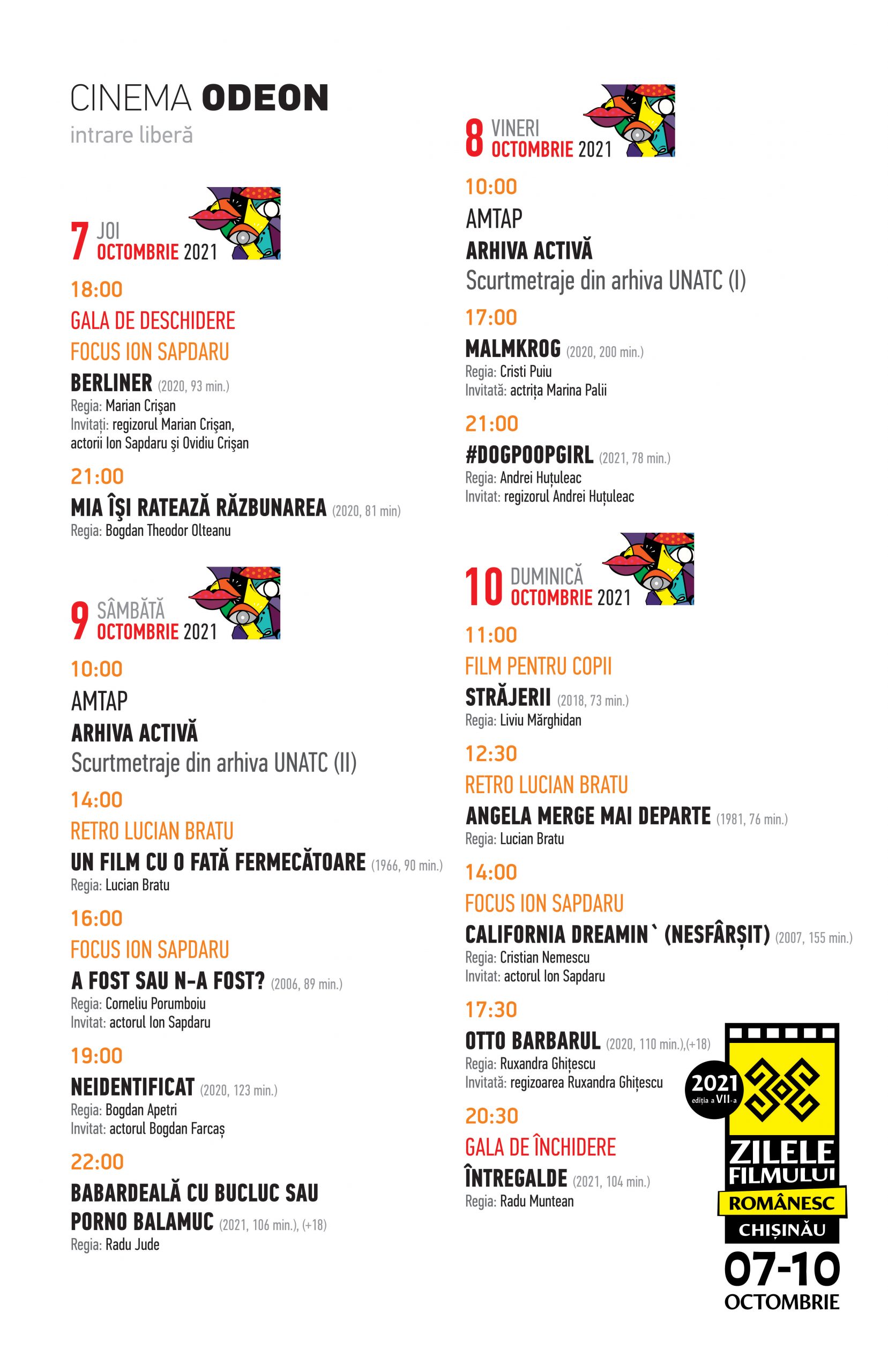 Mai multe informații sunt disponibile pe pagina de Facebook a Zilelor Filmului Românesc la Chișinău.